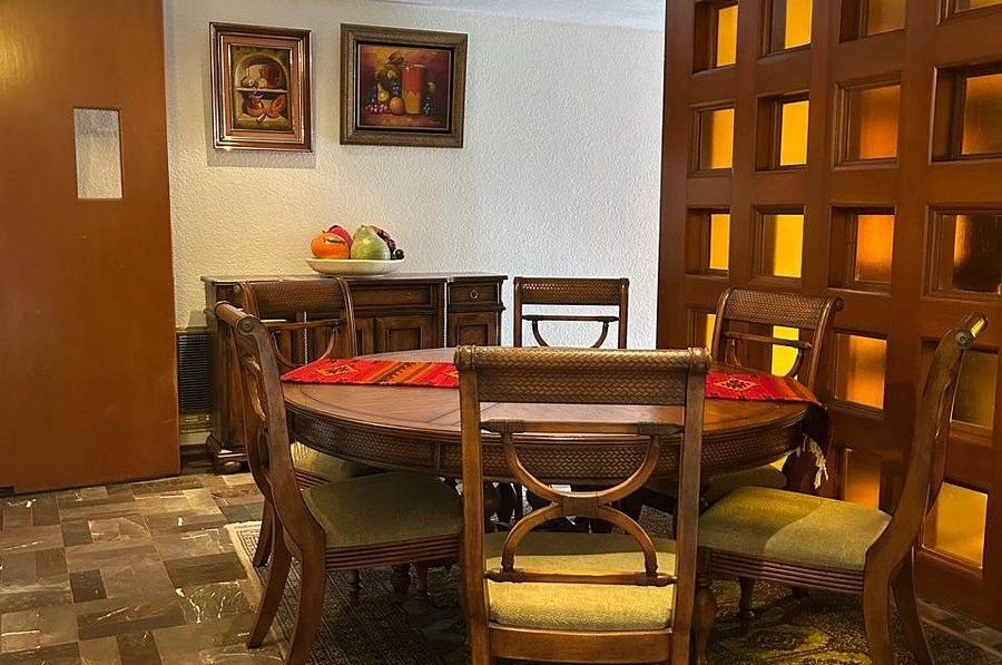 Propiedad de tres plantas con 650 m² de construcción ubicada en calle con vigilancia 24/7, destaca por sus acabados en maderas finas y mármol, integrando cinco recámaras y áreas sociales diseñadas para el entretenimiento, como un bar privado y salón de juegos. Su mayor atractivo es el área exterior: una alberca climatizada con terraza y asador que crea un oasis privado. Con oficina independiente, es la base perfecta para quienes buscan lujo y privacidad.